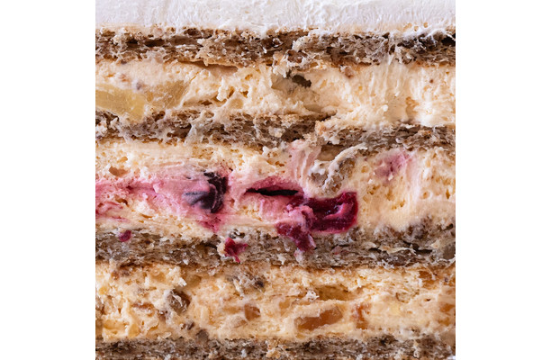 Kremasta torta sa osvežavajućim komadićima višnje i ananasa sa mekim koricama sa orahom i hrskavim komadićima badema.